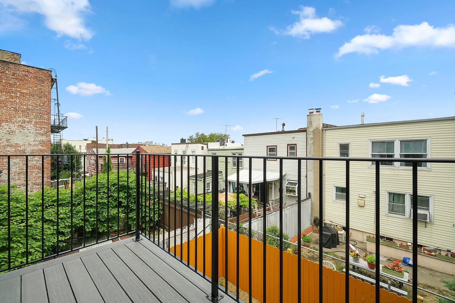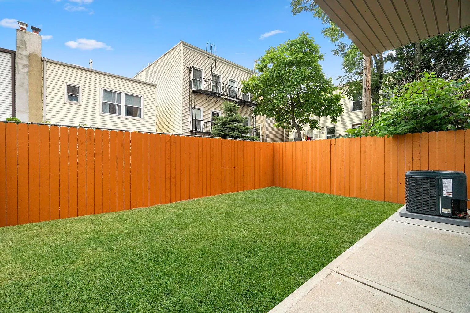 The ground-level suite includes an oversized bedroom or entertainment room with a wet bar, full bathroom, and direct access to a private patio and tree-lined backyard, making it ideal for guests or an Airbnb setup. At the top, a private rooftop deck provides unobstructed views of Jersey City and the Meadowlands, equipped with gas, water, and electric hookups for seamless outdoor entertaining.