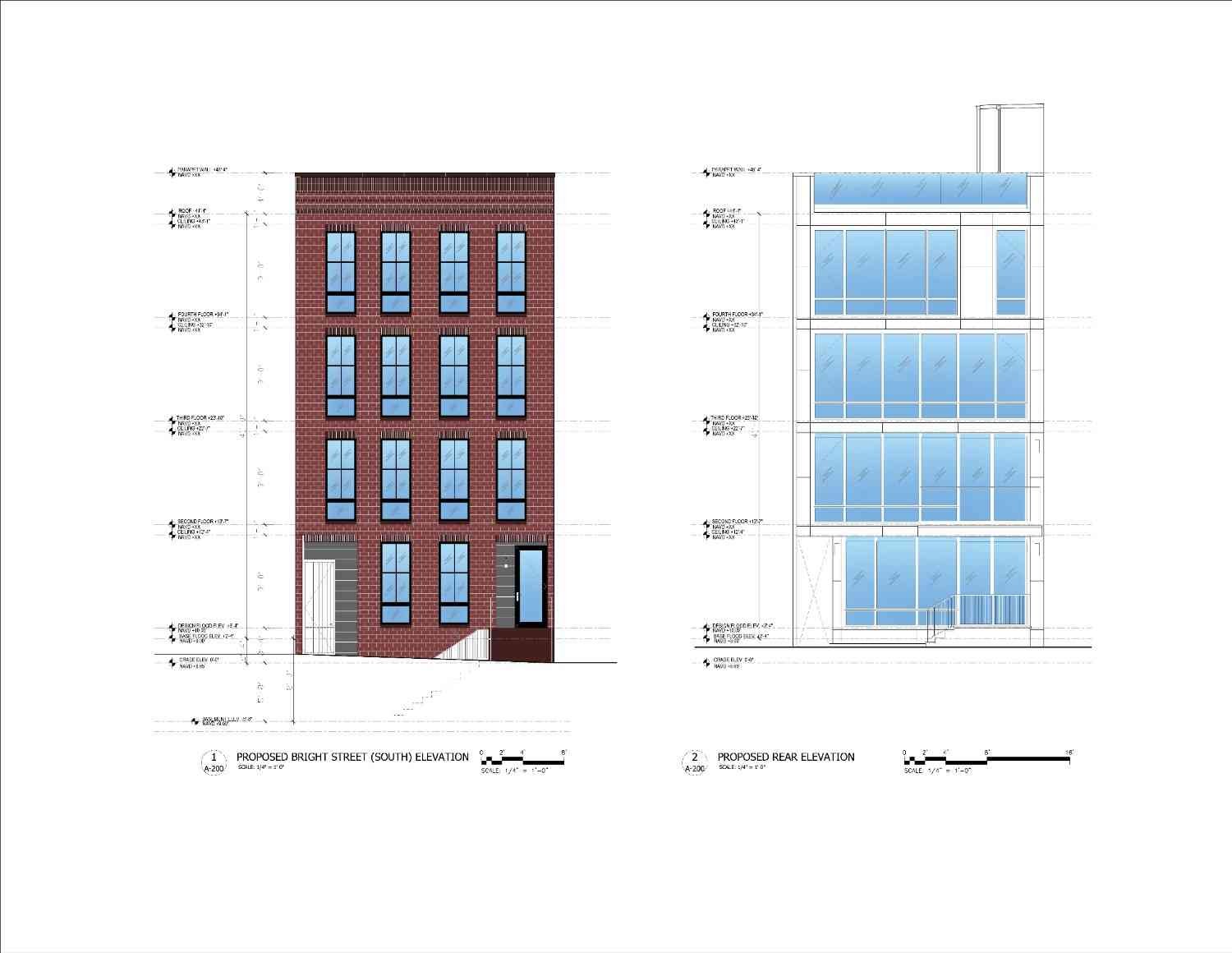 The front elevation preserves a timeless urban aesthetic, featuring a structured brick façade with vertically aligned windows that complement the surrounding neighborhood. Clean detailing, balanced proportions, and refined materials ensure the building enhances the streetscape while maintaining a strong architectural identity.
