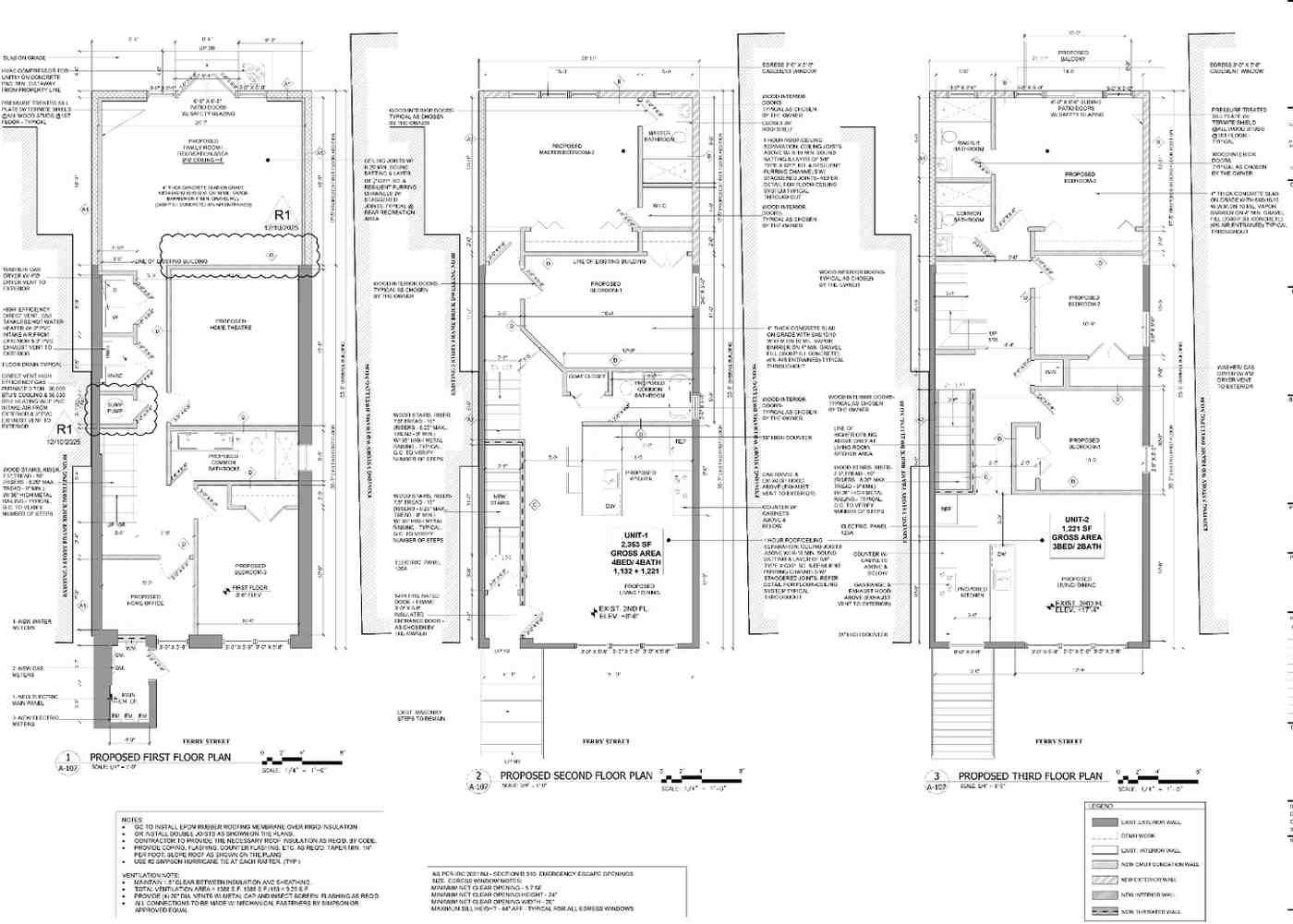 The layout is designed to optimize interior living space across all three levels, offering improved circulation, enhanced natural light, and efficient floor planning. The project also includes a vertical addition and site improvements such as upgraded fencing, improved drainage connections, new driveway paving, sidewalk enhancements, and updated utility integration including water, sewer, and gas connections.