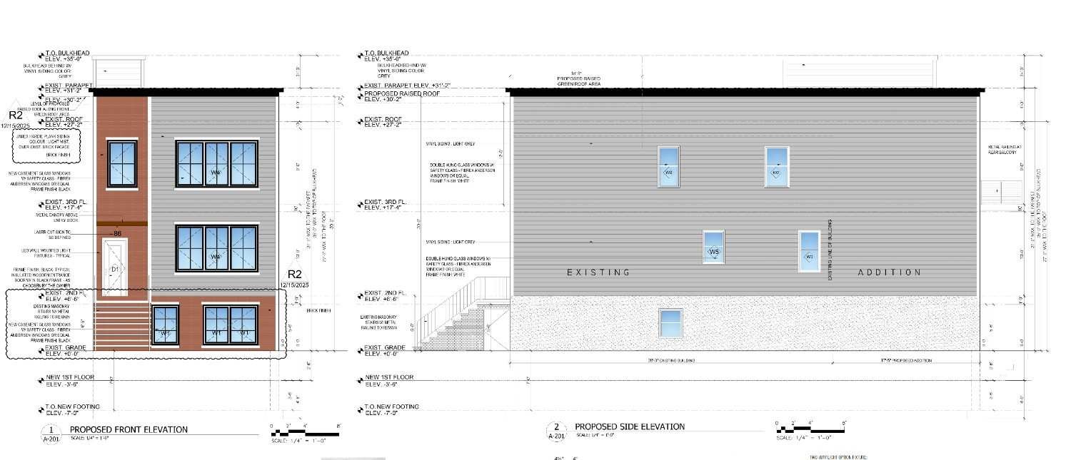 Situated on a 25’ x 98’ lot, this development replaces and expands upon the existing structure with a fully reimagined three-story two-family residence. The proposed design introduces a clean, modern façade featuring a combination of brick and contemporary siding finishes, balanced window placements, and a streamlined vertical profile that enhances curb appeal while respecting the surrounding neighborhood context.